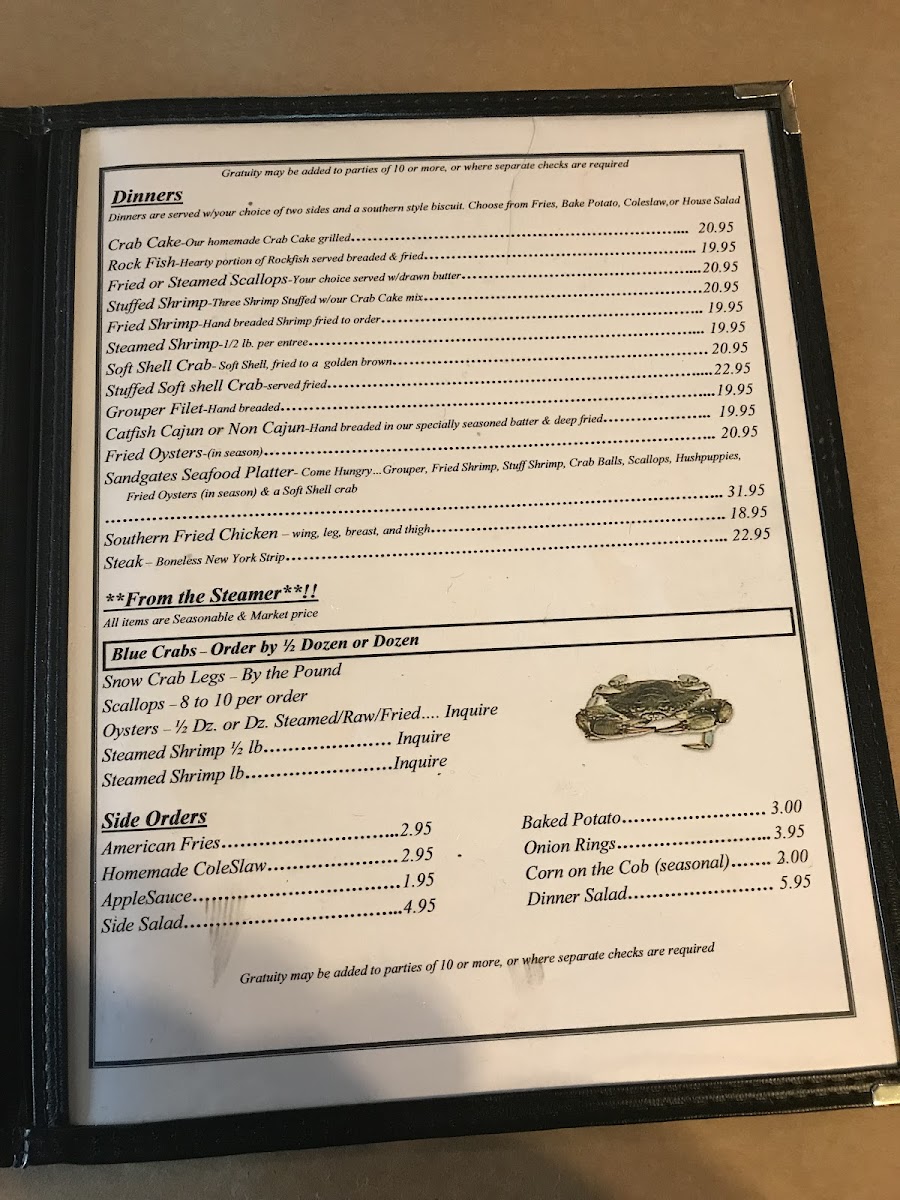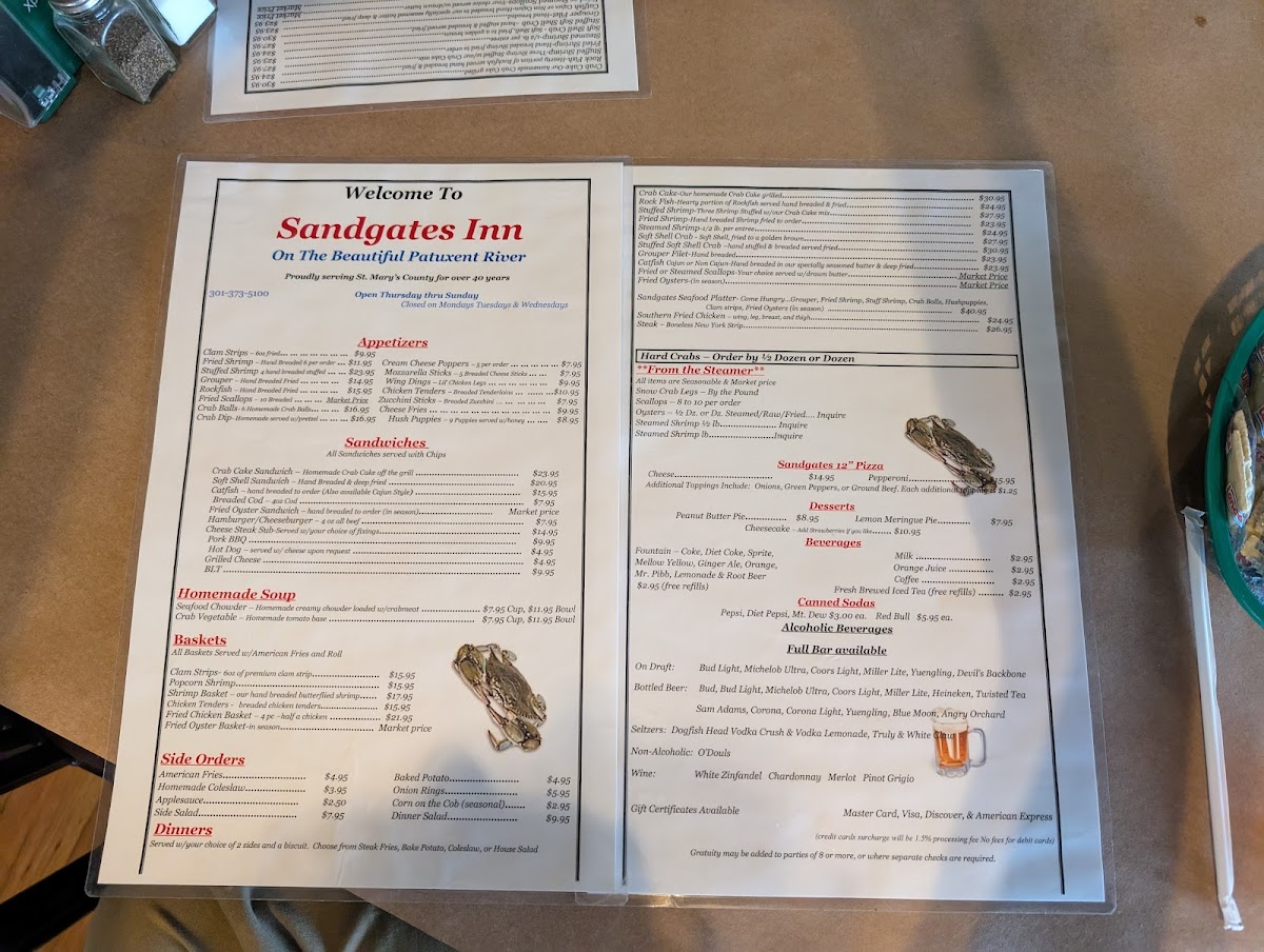 The Sandgates Inn, located at 27525 N Sandgates Rd, Mechanicsville, MD 20659, is a delightful gem nestled in Southern Maryland, known for its warm hospitality and inviting atmosphere. The menu offers a variety of dishes, ensuring there's something for everyone, whether you're in the mood for a hearty meal or a lighter fare.